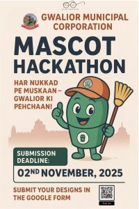 ग्वालियर – नगर निगम ग्वालियर द्वारा “मैस्कॉट हैकथॉन – ग्वालियर की पहचान, ग्वालियर का अभिमान’’ के अंतर्गत शहर के नागरिक एवं युवाओं से अपने शहर का शुभंकर (मैस्कॉट) डिजाइन करने, नाम रखने एवं नारा बनाने के लिए सुझाव मांगे जा रहे हैं। इसके लिए शहर के नागरिक 02 नवम्बर 2025 अपने सुझाव प्रेषित कर सकते हैं। हो सकता है आपके डिजाइन, आपके सुझाव ग्वालियर की नई पहचान बन जाएं।