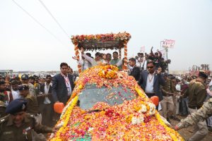 रोड शो के दौरान स्थानीय निवासियों ने पुष्प वर्षा कर किया अभिनंदन